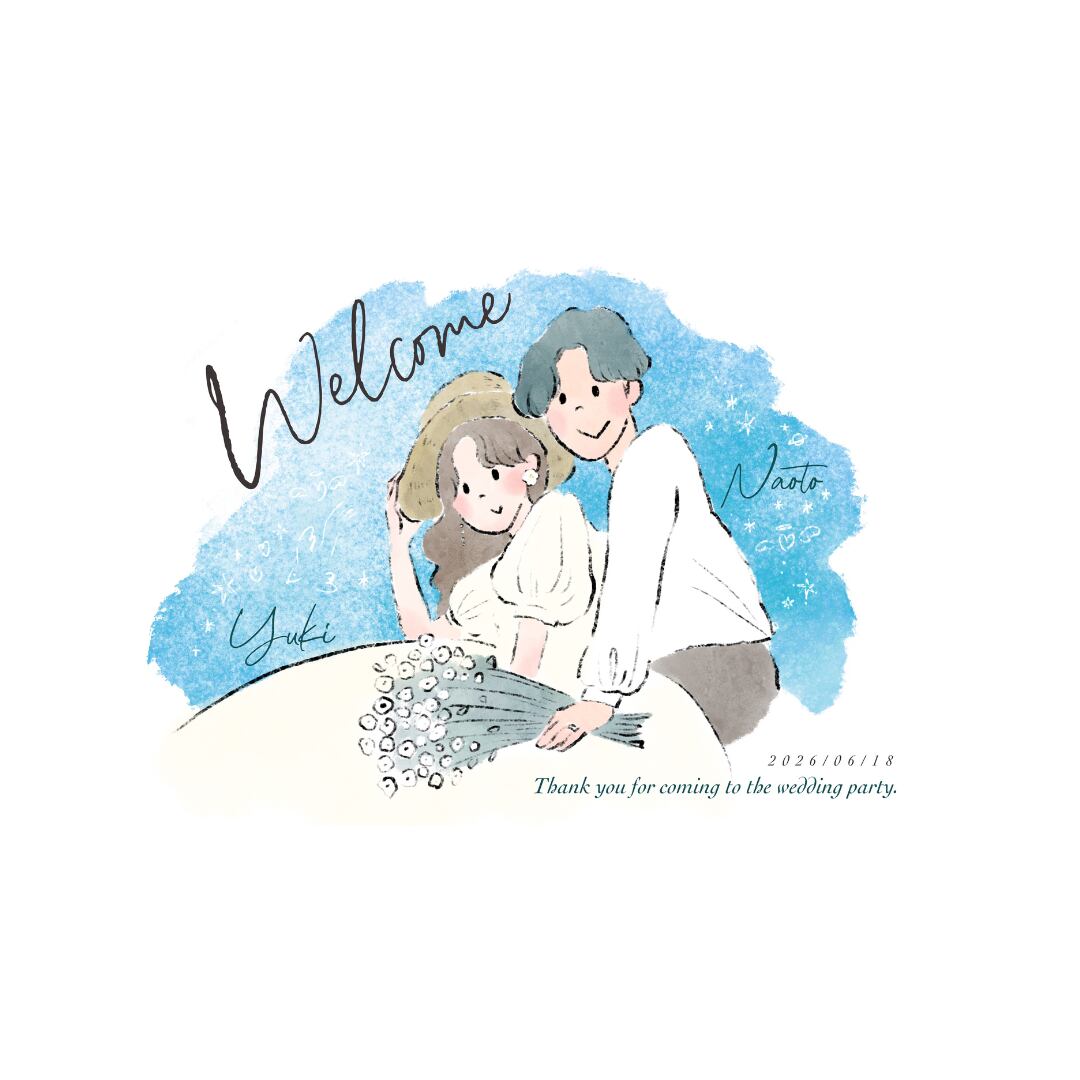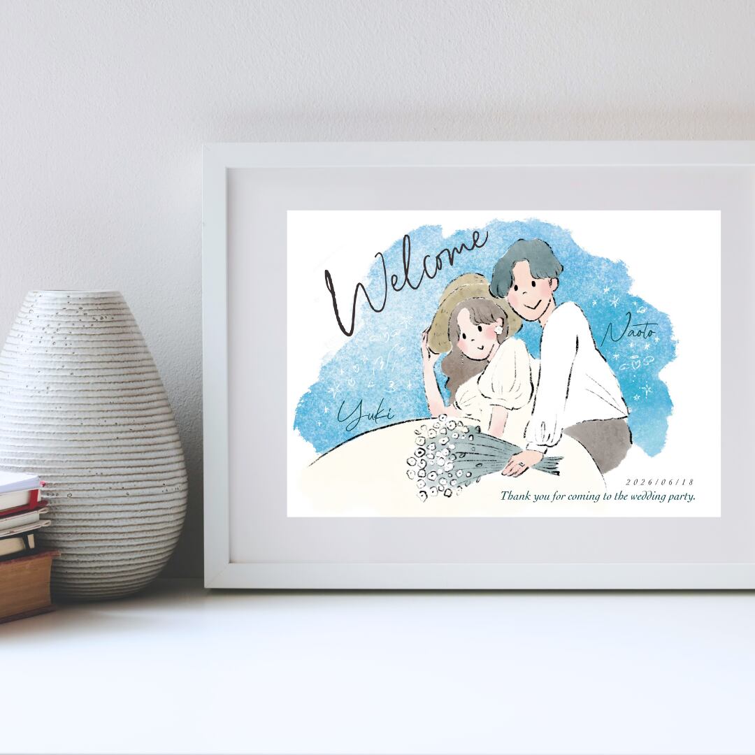 水彩タッチのフルオーダー似顔絵ウェルカムボード『YURU YURU WEDDING(デジタル)』 データ納品